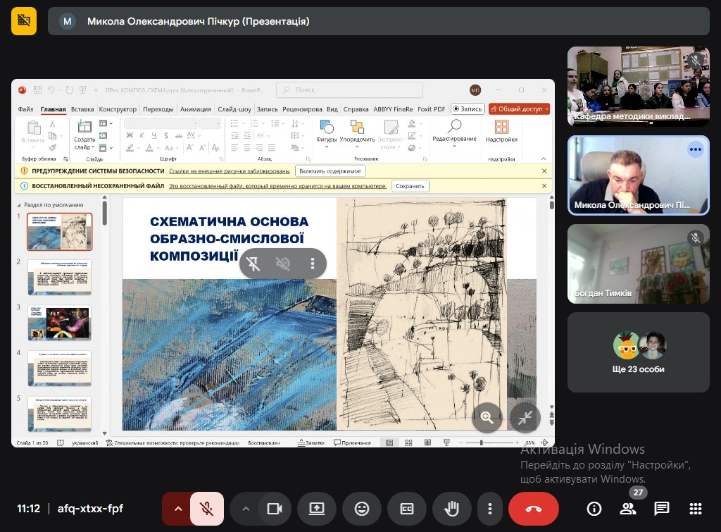 З гостьовою лекцією для студентів та викладачів кафедри методики викладання образотворчого і декоративно-прикладного мистецтва та дизайну виступив професор Микола Пічкур Уманського державного педагогічного університету імені Павла Тичини. Тема гостьової лекції «Схематична основа образно-смислової композиції» присвячена проблемі з’ясування композиційних побудов у Читати далі