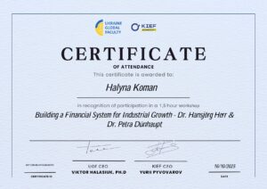 Викладач Коман Галина Михайлівна учасниця Ukraine Global Faculty та прослухала лекцію “Дослідницький компетентнісний центр: виклики та стійкість глобальних ланцюгів постачання і створення доданої вартості” Dr. Petra Dünhaupt,Dr. Hansjörg Herr